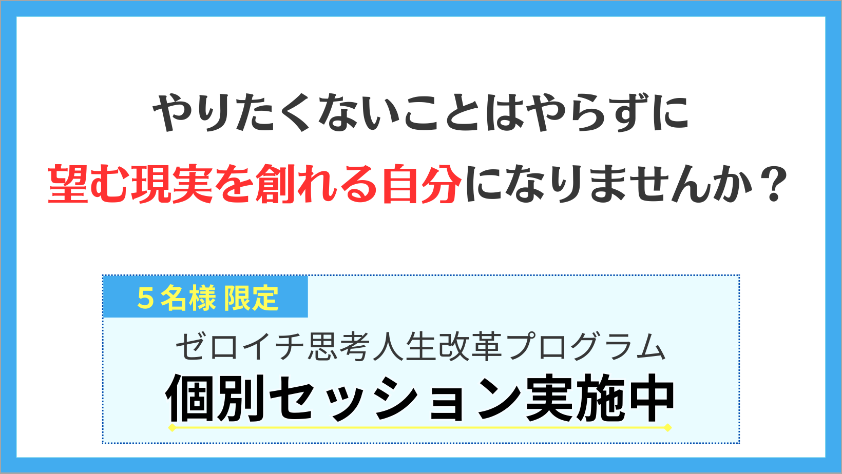 このような悩みを抱える方が、自分の力で問題を解決し、望む現実を自分で創れるようにするための講座が『ゼロイチ思考人生改革プログラム』です。
